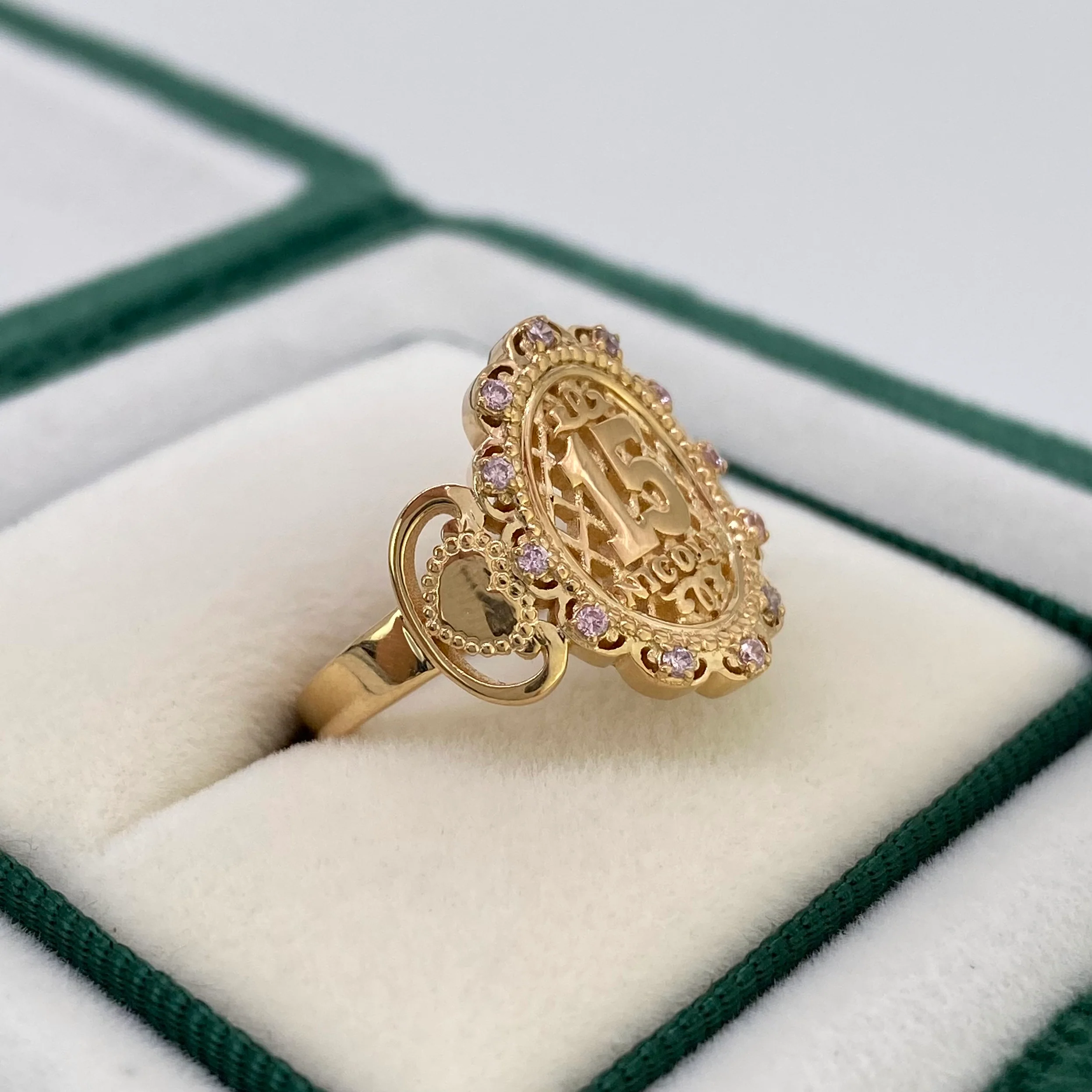Anillo 15 Años POR FABRICACIÓN Oro amarillo 18k / Talla 6 1/4 / 6,76 Gr *