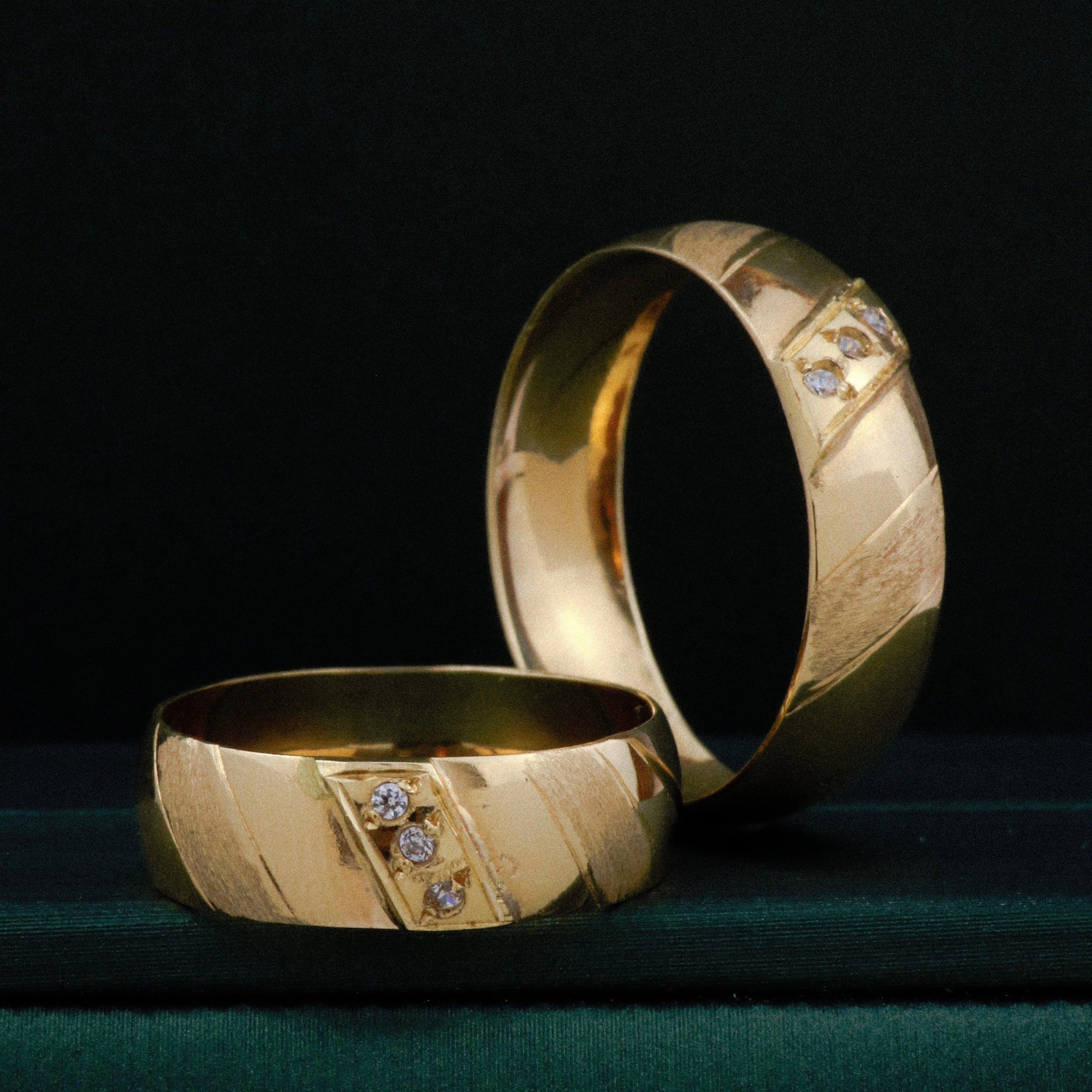 Anillo Argollas Circones Blancos Diagonal POR FABRICACIÓN Oro amarillo 18k / Talla 7 / 11 Gr *