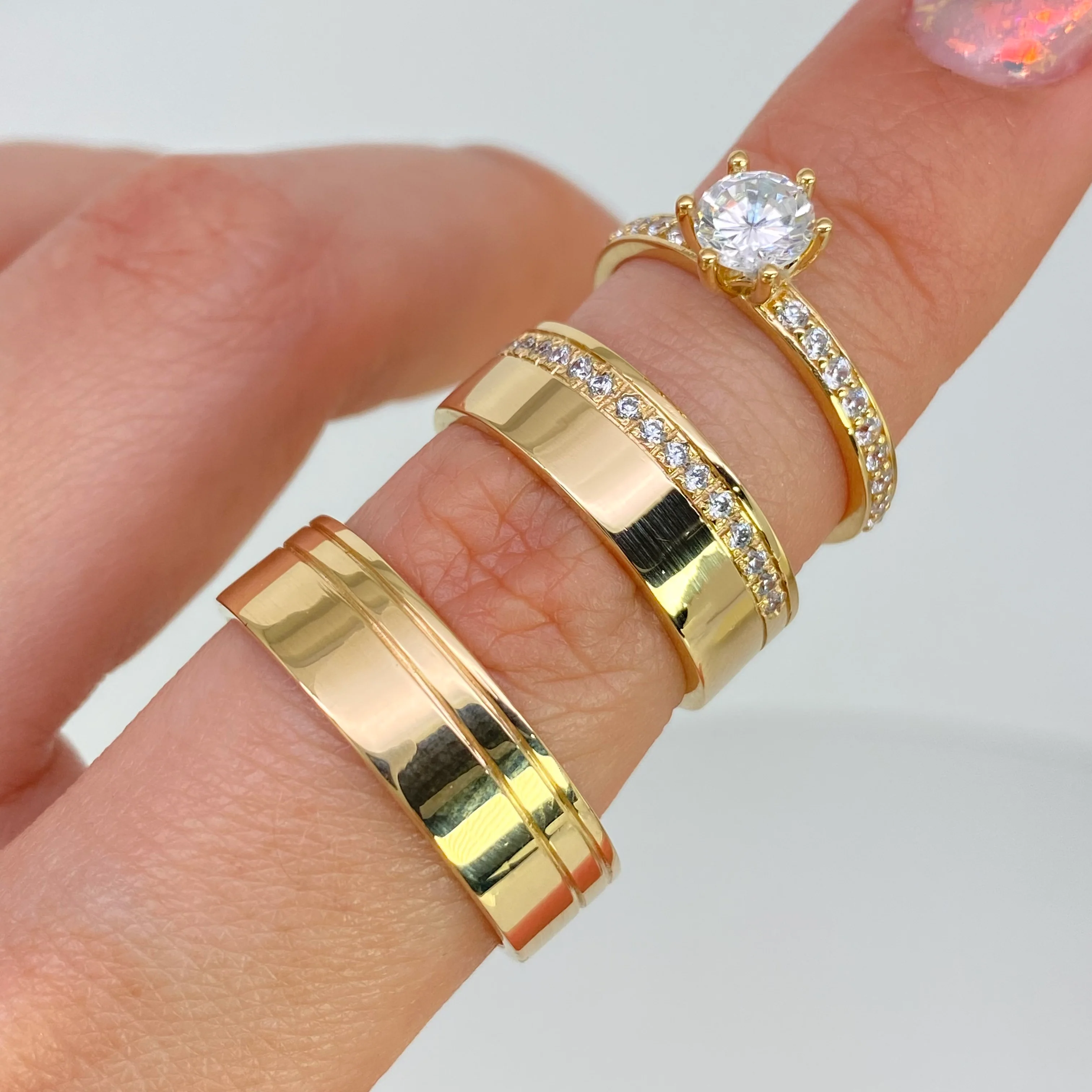 Anillo Argollas Matrimonio Con Anillo Solitario Circón Blanco POR FABRICACIÓN Oro amarillo 18k / Talla 7 / 18,14 Gr *