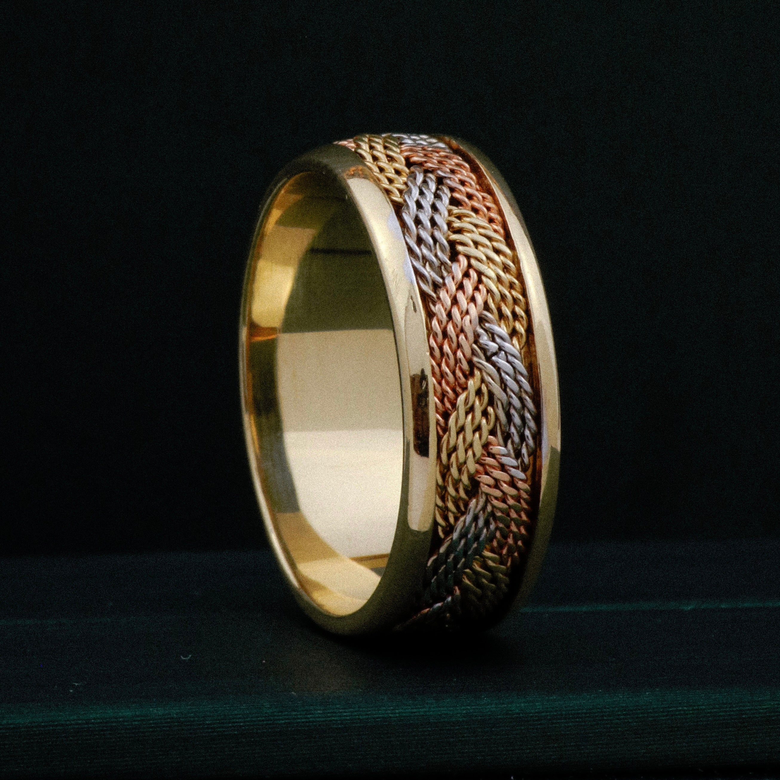 Anillo Argollas Trenzadas POR FABRICACIÓN Tres oros 18k / Talla 7 / 20 Gr *
