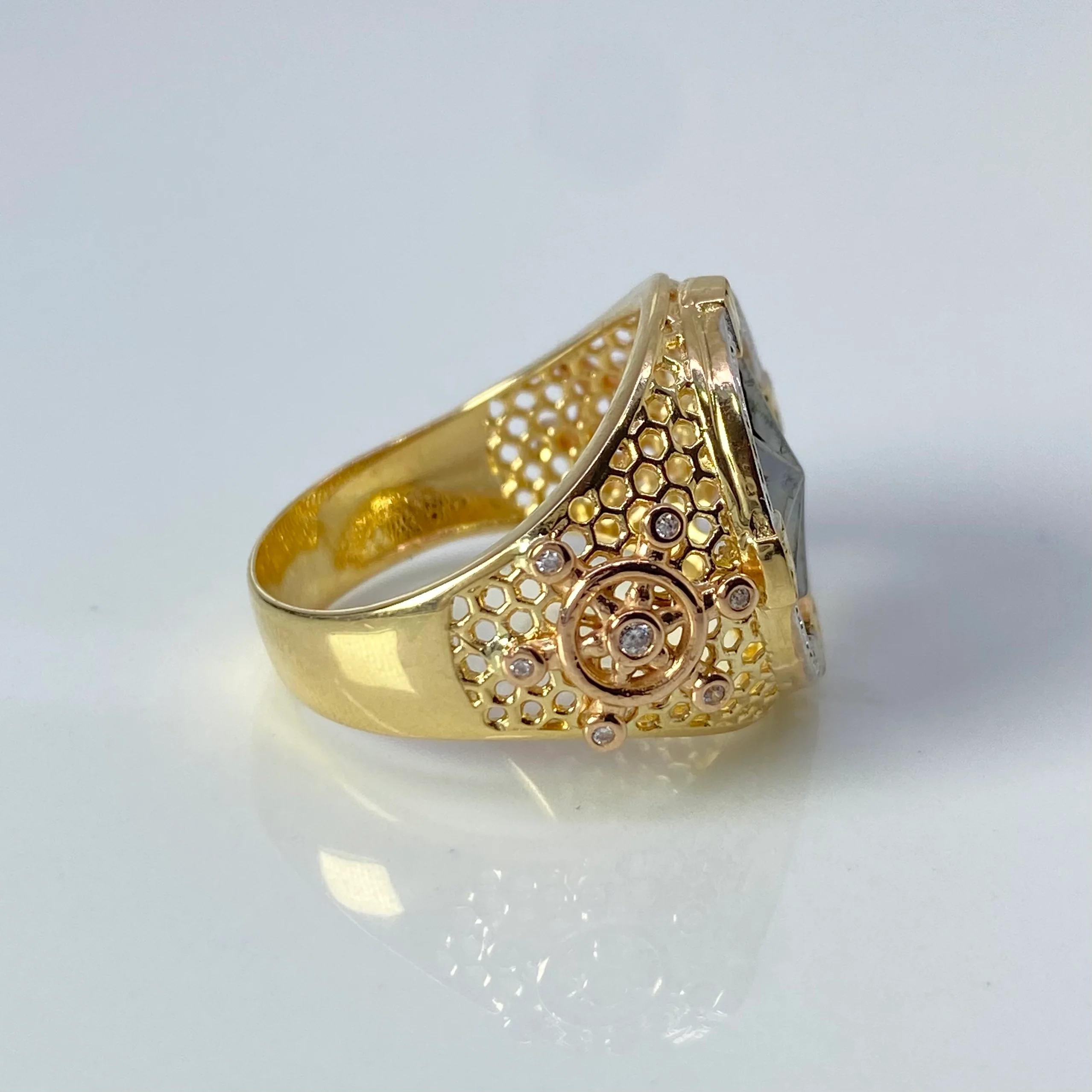 Anillo Brújula Circones Blancos Tres oros 18k / Talla 10 / 9,73 Gr