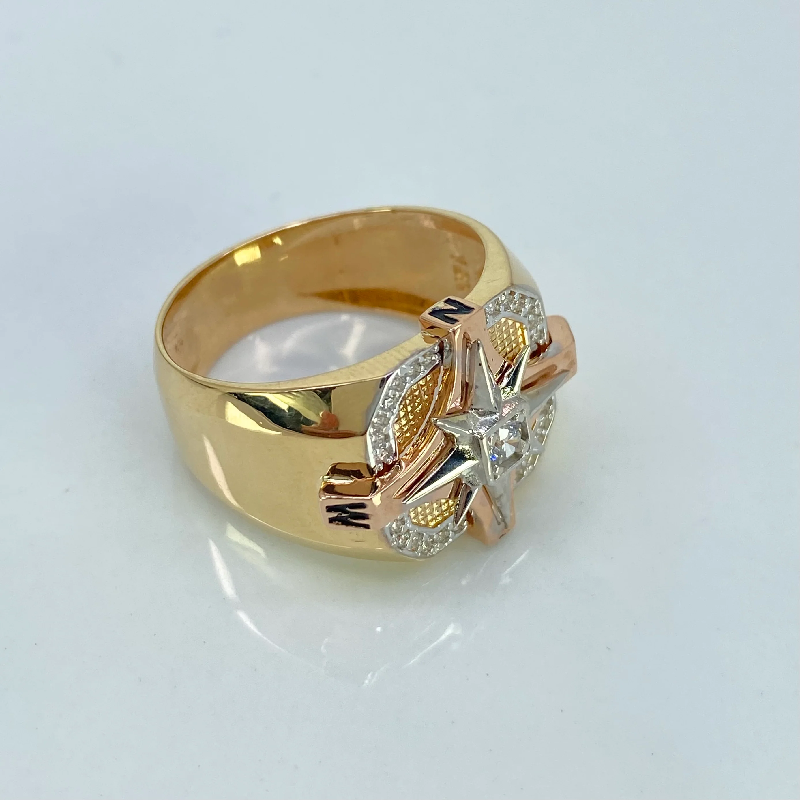 Anillo Brujula Cuadro Circones Blancos Tres oros 18k / Talla 10 / 10 Gr †—