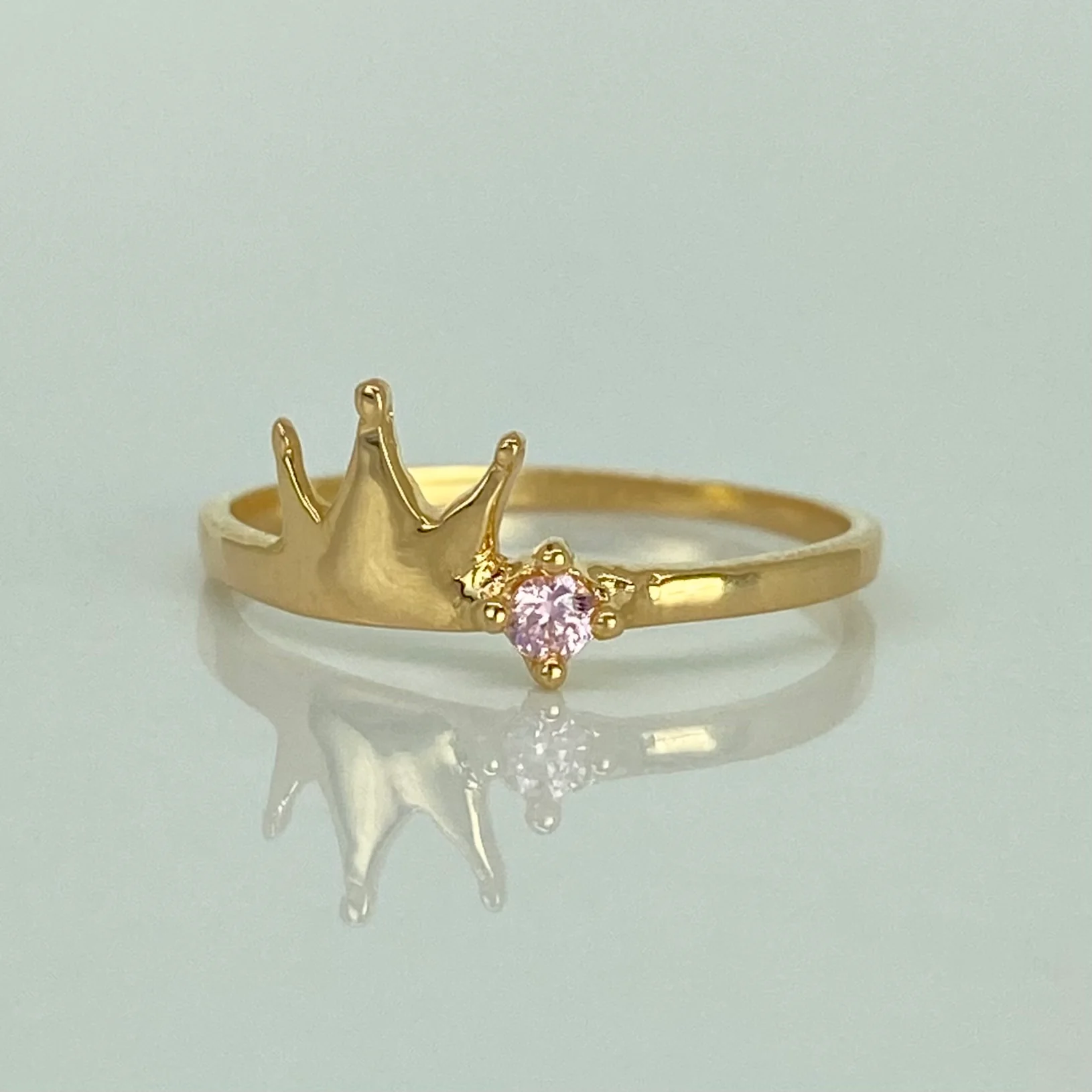 Anillo Corona Circon Rosa Oro amarillo 18k / Talla 6 1/4 / 1,34 Gr