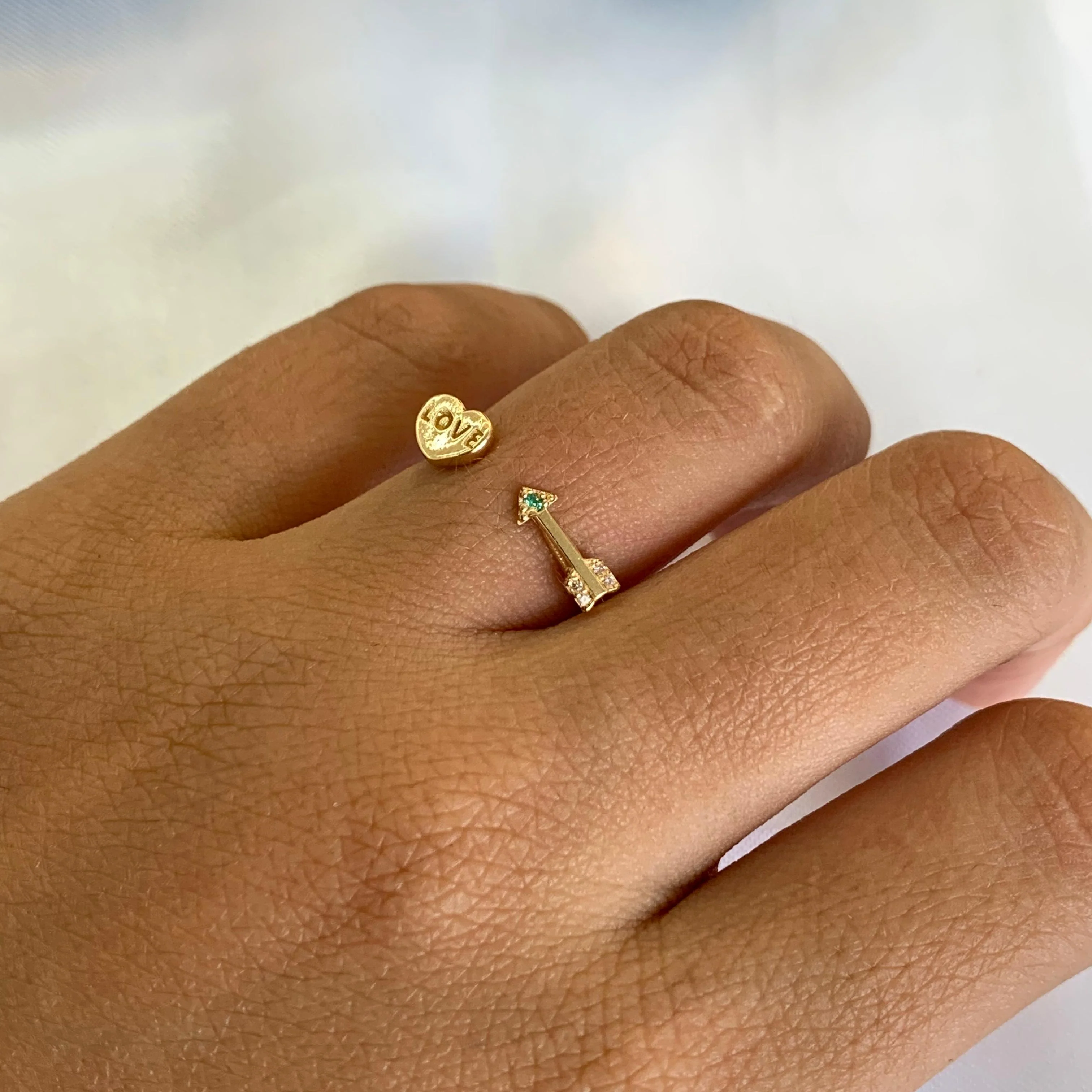 Anillo Flecha Corazon Circones Blanco Y Azul Oro amarillo 18k / Talla 5 3/4 / 1,61 Gr †