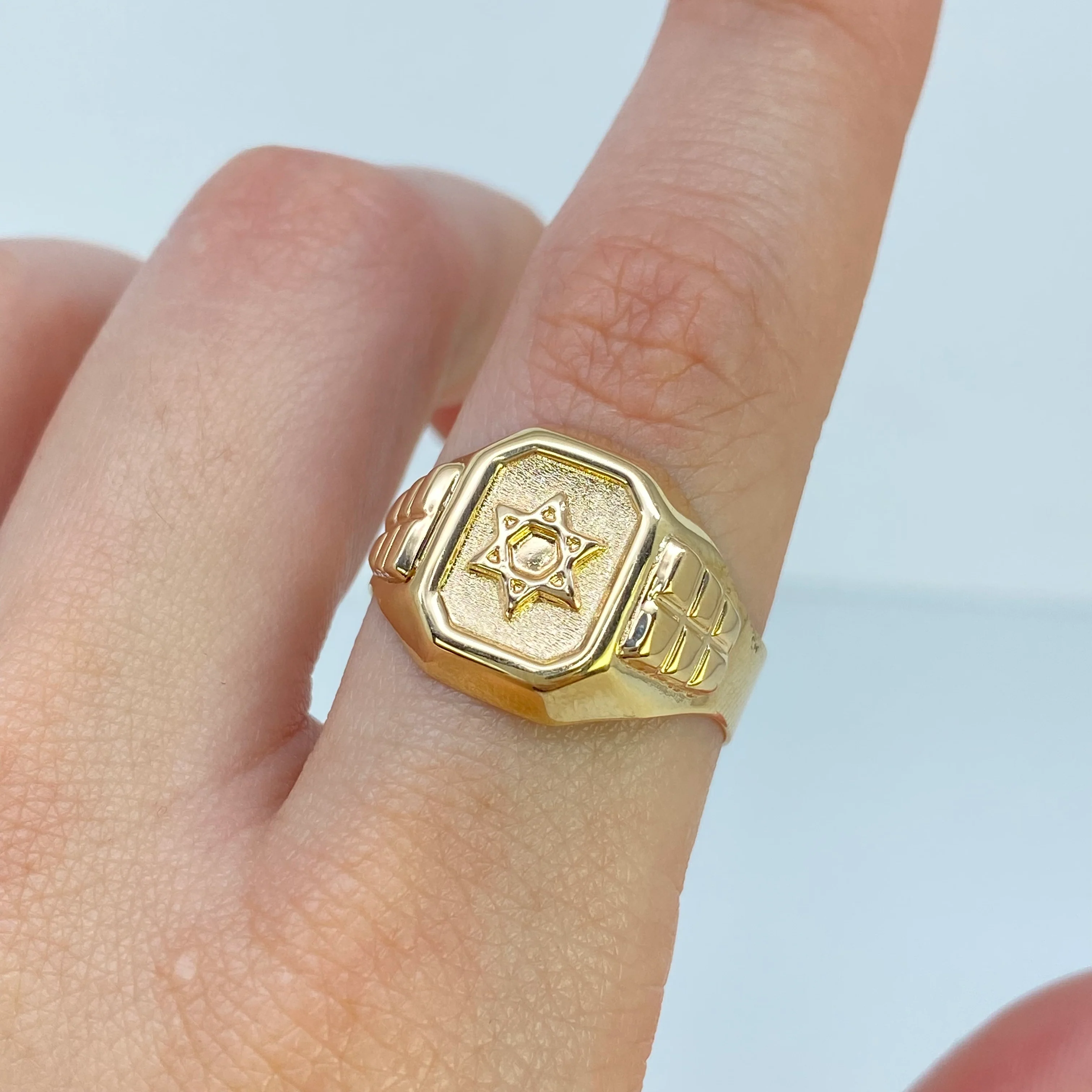 Anillo Sello Estrella De David Oro amarillo 18k / Talla 10 1/4 / 4,15 Gr †