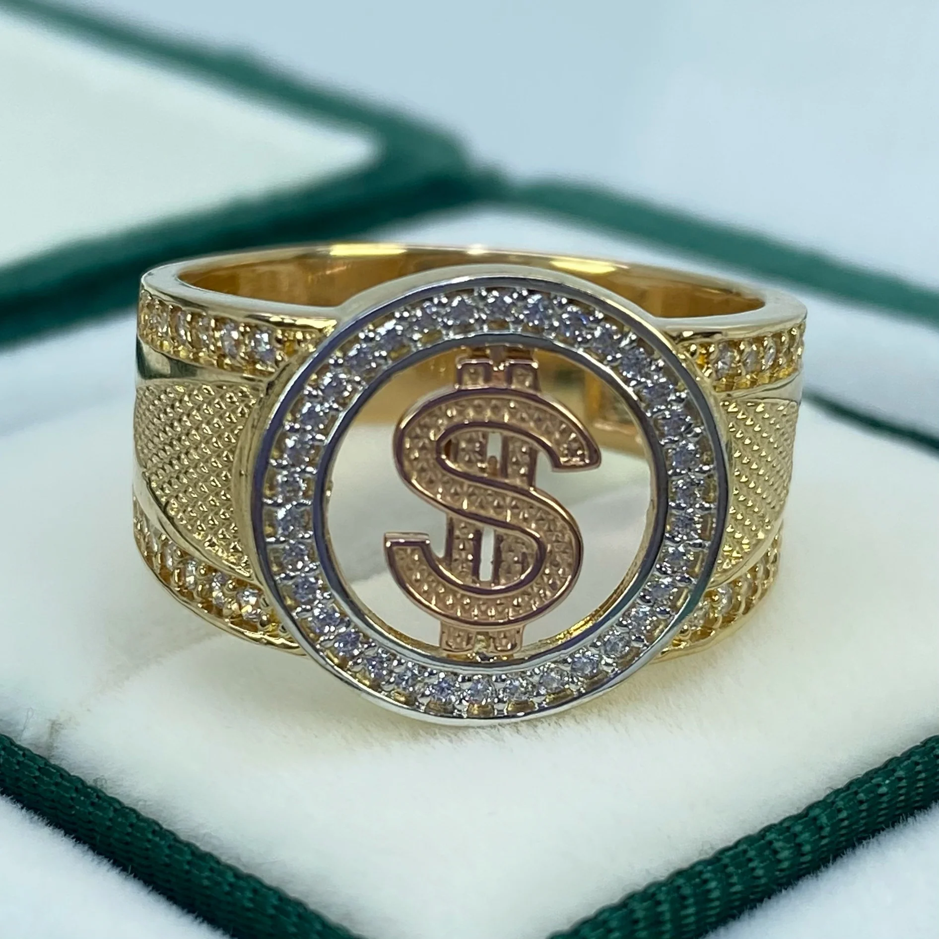 Anillo Signo $ Circones Blancos Tres oros 18k / Talla 11 / 8,80 Gr