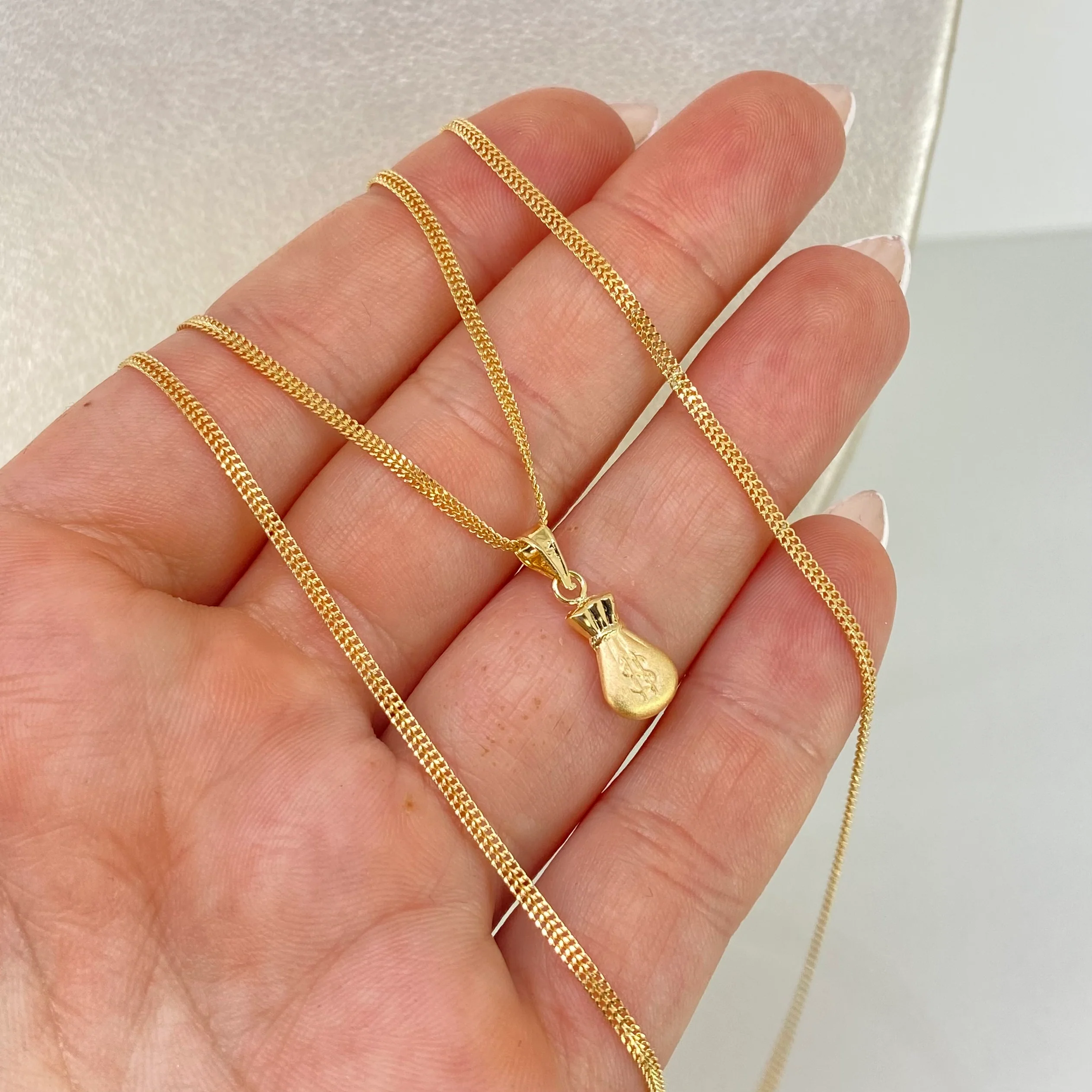 Set Cadena ● Mini Sedusa + Dije Bolsa Dinero Oro amarillo 18k 2,8 Gr / 1,7 mm / 45 Cm